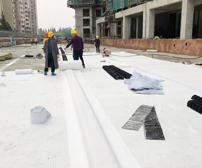 高分子防護(hù)排水異型片自粘土工布卷材是由高密度聚乙烯(HDPE)純白原料,在熔融狀態(tài)下經(jīng)真空吸塑一次成型制成,制造出的單向連續(xù)密閉殼體型凸起的板狀材料,形成一種膜、殼連接,具有立+體排水空間和一定支撐剛度,液體、氣體可以在其內(nèi)流動的防護(hù)排水卷材。